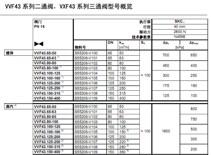 DN100:两通阀VVF43.100-125,VVF43.100-160,三通阀VXF43.100-160
